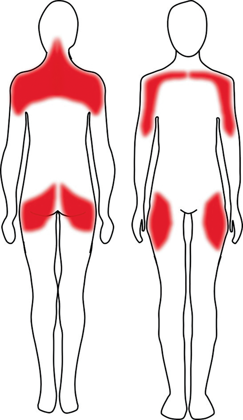 Zones douloureuses au cours des arthromyalgies inflammatoires de la pseudopolyarthrite rhizomélique.